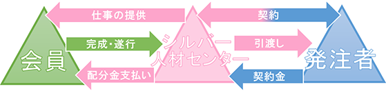 - シルバー人材センターと会員、会員と発注者との間には雇用関係はありません。
